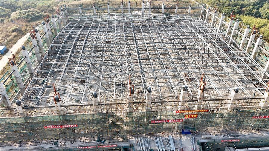 【錨定目標(biāo) 奮力沖刺】冶建廣東公司項目鋼結(jié)構(gòu)網(wǎng)架提升大捷