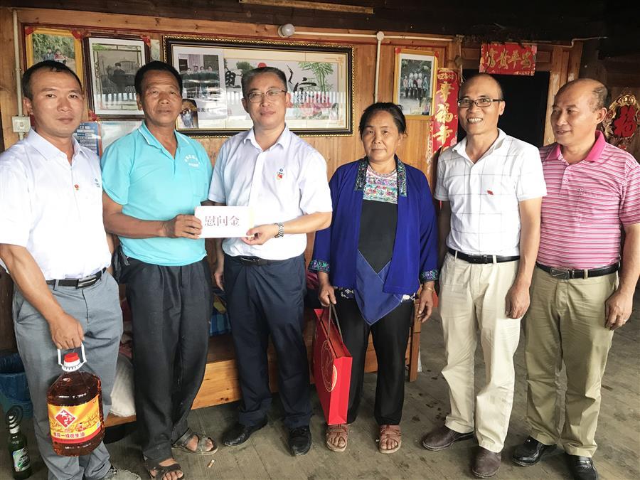 打贏脫貧攻堅戰(zhàn),冶建公司一直在路上。在中秋、國慶來臨之際,一公司三江縣洋溪玉民村烏杠屯易地扶貧搬遷工程項目部依然奮起趕工,項目各項工作穩(wěn)步推進中。9月19日,一公司經(jīng)理黎建平率領(lǐng)烏杠屯易地扶貧搬遷工程項目部的黨員干部帶上糧油、慰問金等前往烏杠屯開展“雙節(jié)”慰問活動。