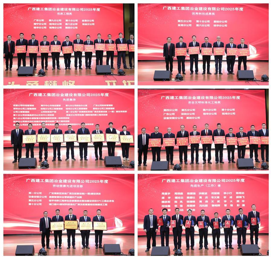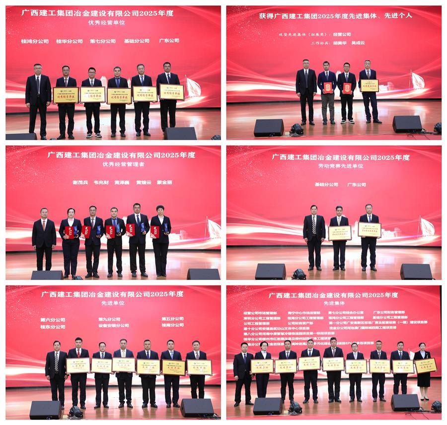 會上表彰了公司2025年度先進單位、集體及個人,勞動競賽先進單位、項目部及個人,優(yōu)質(zhì)工程、優(yōu)秀科技成果、安全文明標準化工地等。桂鴻分公司、桂華分公司、第七分公司、第一分公司等5家單位作經(jīng)驗交流發(fā)言。
