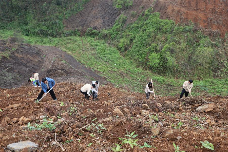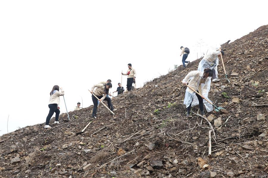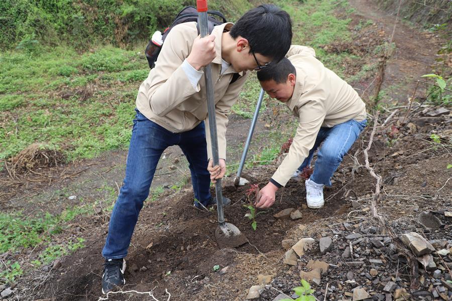 活動(dòng)現(xiàn)場(chǎng),青年志愿者分組分片區(qū)開(kāi)展植樹(shù)活動(dòng)。各小組團(tuán)員青年分工協(xié)作、默契配合,鏟土挖坑、立苗填土,個(gè)個(gè)熱情高漲、干勁十足,活動(dòng)現(xiàn)場(chǎng)氣氛熱烈。經(jīng)過(guò)大家熱火朝天的忙碌,一排排新種樹(shù)苗有序“落根”,山坡上煥發(fā)出盎然生機(jī)。